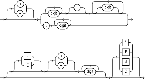 f or F indicates that the number is a 32-bit binary floating point number of type BINARY_FLOAT.